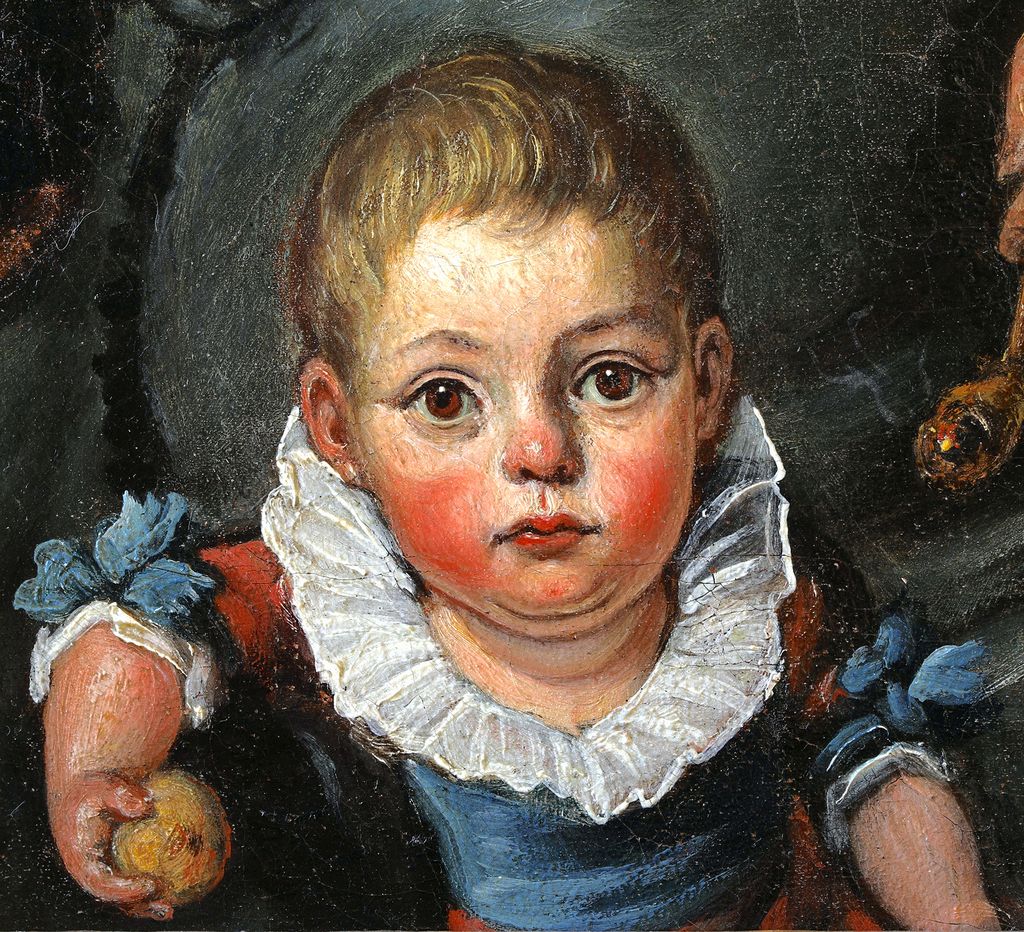 Der einjährige Franz Xaver Pfyffer von Heidegg auf dem Gruppenporträt der Familie Pfyffer von Heidegg, gemalt von Josef Reinhard, ca. 1791